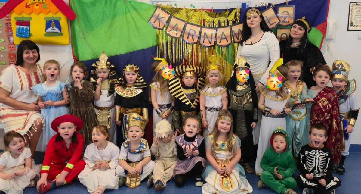 W grupie Motylków odbył się wyjątkowy bal karnawałowy pod hasłem „Starożytny Egipt”. Tego dnia sala zamieniła się w egipską krainę pełną tajemnic i piramid. Wszystkie dzieci wystąpiły w przepięknych, pomysłowych strojach. Wspólna zabawa, tańce i konkursy sprawiły wszystkim wiele radości.